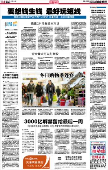 “在今年连续多次上调后,目前的存款准备金率已越来越接近商业银行的容忍度,预计明年国家会更多地动用利率手段进行调控,很有可能一次性加息50基点。”孙达建议,市民在保证日常支出需要和家庭流动性资金的前提下,可以适当减少一些存款,增加一些银行低风险理财产品,或是进入资本市场购买股票、基金等。“现在跑赢CPI的最主要方式就是靠资本市场。”与孙达的观点不谋而合,采访中李楠舟也认为,手中资金量较大的投资者应该选择打新股。记者 许佳
