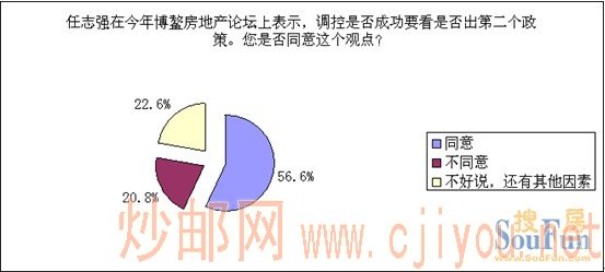 上海搜房网最新调查显示:56.6%的网友同意“调控是否成功要看是否出第二个政策”的观点,20.8%的网友不同意这种看法。还有22.6%网友认为调控是否成功可能还有其他原因。