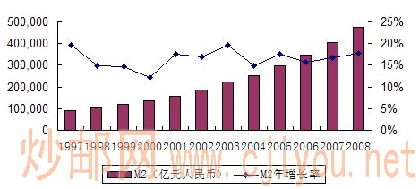 那中国是用什么来购买美元的呢?那就是人民币。而这导致过去二十年人民币的增加量是不可思议的数字。从1997年至2008年复合增长率达到16.21%,货币供应量M2为47.5166万亿元人民币,净增量38.4171万亿元人民币(80.85%)。对比外汇储备的净增量(按6.5963汇率),仍有26.5036万亿元人民币的增量。