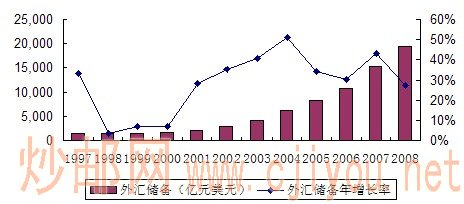 但以上的种种原因都没有导致人民币的大幅度升值。表面的原因是中国的外汇管制,大量的购买美元和美国国债。从1997年至2008年复合增长率达到27.04%,外汇储备为1.9460万亿元美元,净增量1.8061万亿元美元(92.81%)。