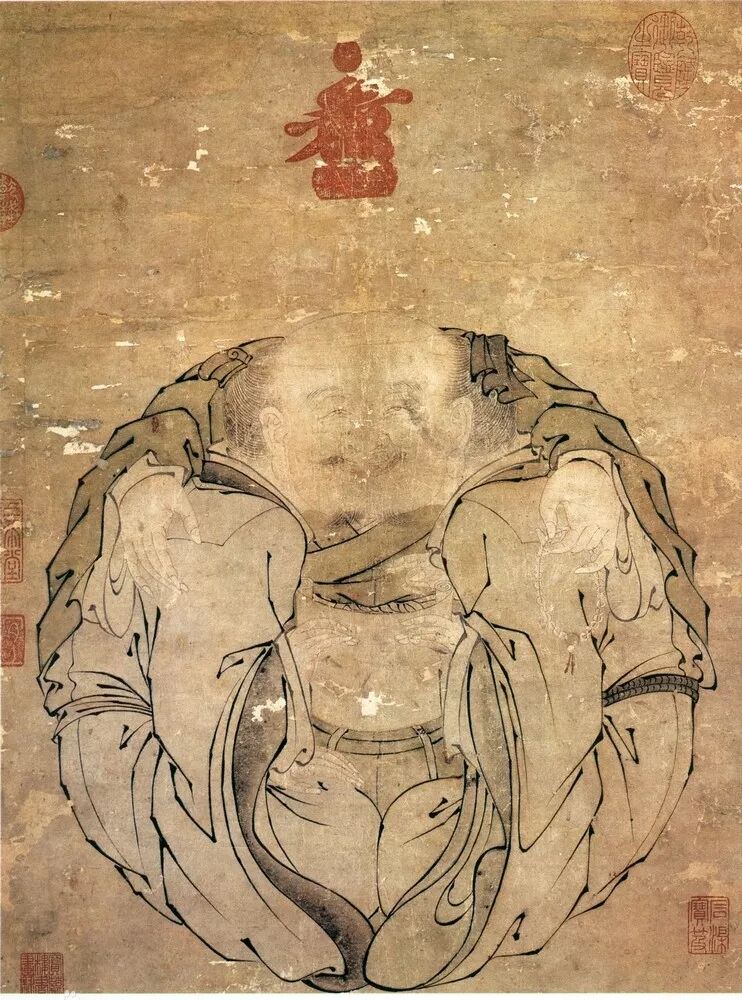 此幅三教人物合抱一团,谈论经书,喜气和睦,正是当时“三教合一”的思想体现。