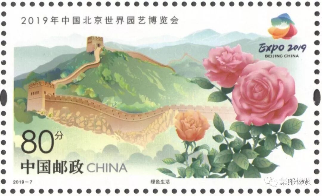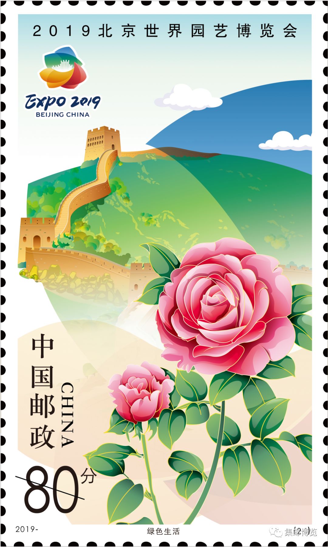 北京世园会园区位于北京市延庆区八达岭长城脚下,因而有“长城脚下的世园会”之称。 邮票第1枚“绿色生活”,以在青山间蜿蜒的长城、北京市市花月季,以及本次世园会的会徽——长城之花为主要元素,寓意园艺源于自然,倡导尊重自然、融入自然的理念,也突出了“中国风格”和“北京品牌”。