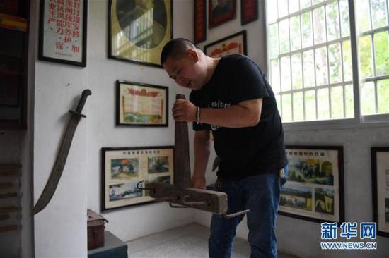 据罗小龙介绍,因为家乡是红军长征出发地,有许多红军部队留下的文物散落民间。20多年间,他跑遍了于都的各个村镇寻找老物件,还远赴浙江、福建等地收集红色文物。 罗小龙的执着也吸引了志同道合的朋友,于都人谢金荣与罗小龙一起投身文物收藏事业,将家里的房子腾出来与罗小龙一起筹建博物馆。罗小龙和谢金荣希望通过自己做的事业,告诉更多人长征中发生的感人故事,弘扬长征精神。新华社记者 周密 摄