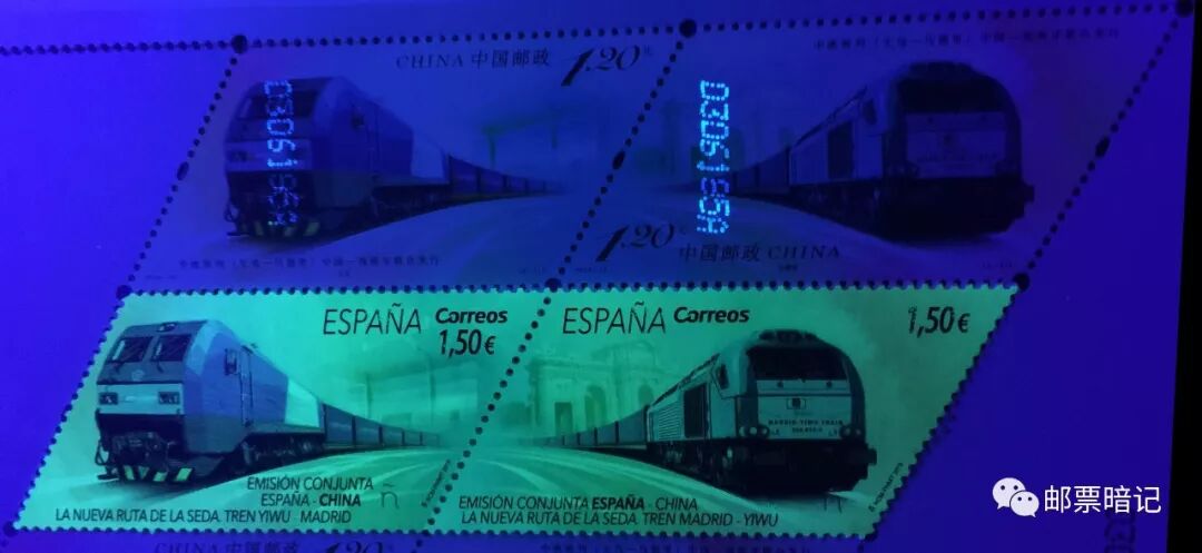 笔者有幸在武汉世界邮展期间购买了西班牙邮政的《中欧班列》邮票,与我国的邮票比较,两者有很多不同。