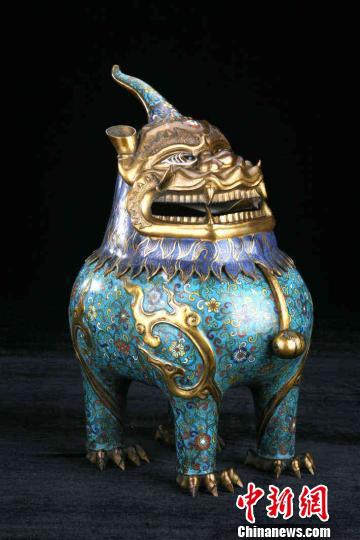 清乾隆款掐丝珐琅甪端。 沈阳故宫供图 摄清乾隆款掐丝珐琅甪端。 沈阳故宫供图 摄