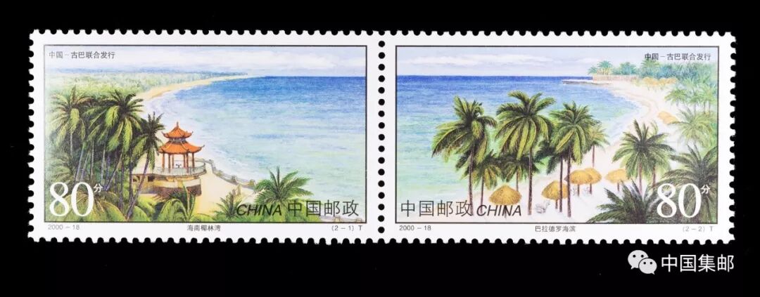 2000年9月26日,中国邮政与古巴邮政联合发行2000-18《海滨风光》特种邮票一套两枚。