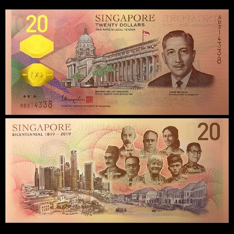 新加坡重磅消息:为纪念新加坡开埠200周年,新加坡金融管理局将推出20元新纪念钞。而且,这是一张塑料材质的新钞!