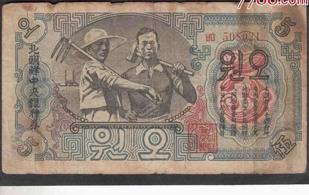 现在流通的朝鲜纸钞中已经没有印章,而在一九四七年版纸币和一九五九年版纸币中,朝元还是有印章的踪影的。