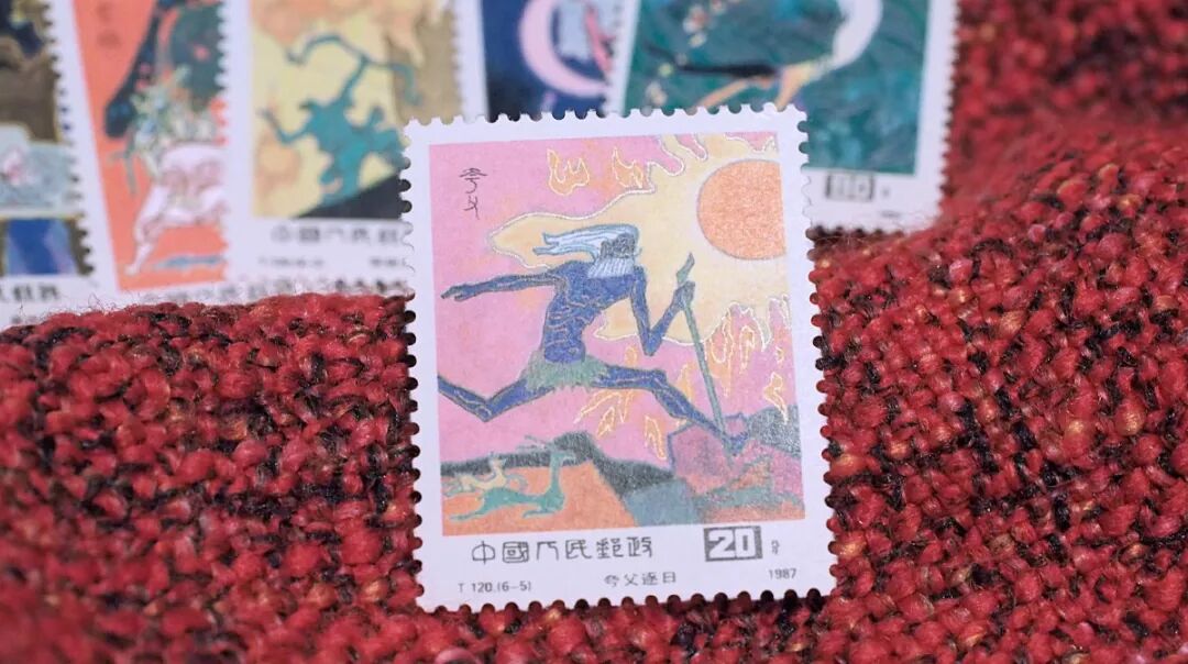 1987年9月25日中国邮政发行了一套《中国古代神话》邮票,全套6枚,分别为盘古开天、女娲造人、羿射九日、嫦娥奔月、夸父逐日、精卫填海。