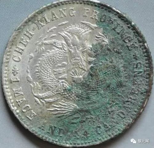 初步发现有三个不同版别,A 龙身为网状版,龙鳞身上是网状的点,藏界有人称之为珍珠龙。稀少版别,是试铸币或什么币界还未有定论。正面中文文字笔划与B币、C币多有不同之处,而且A币笔划显示较瘦一点。龙面四周英文字母也有不同之处,4 . 4之间有点。B 龙图面4 4 之间无点,龙鳞身上是点状,浙江省造等字与C币有不同之处。C 龙图面4 . 4之间有点,龙鳞身上是点状。