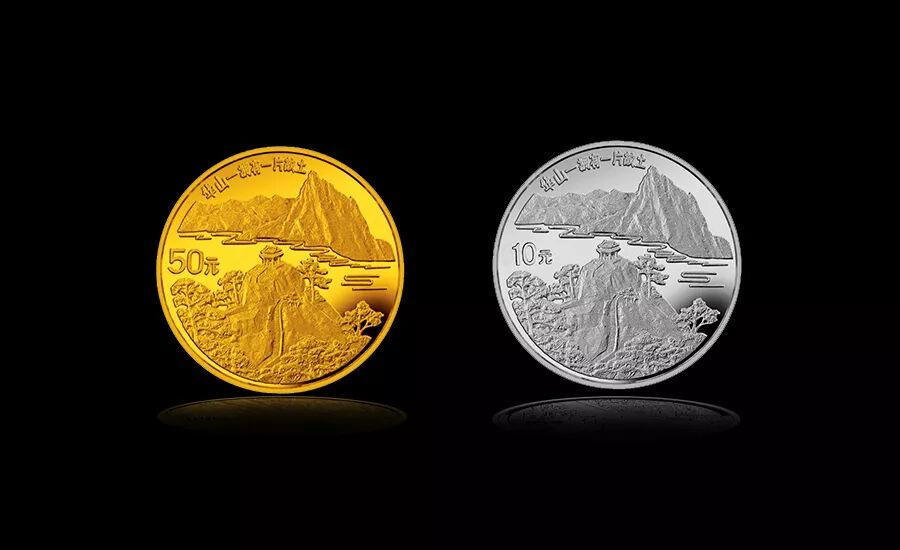 纪念币背面图案中两座山峰为表现主题,前面的山顶还矗立着亭阁一座,山间布满苍翠树木,但山体峻峭,险峻无敌;后面群山矗立,中间云雾缭绕,给人一种高处不胜寒的高冷感受。