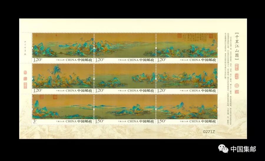 《长江》邮票以袁运甫先生国画长卷《长江万里图》为蓝本,以九图连票形式相衔展现长江万里奔腾的雄姿和气概。