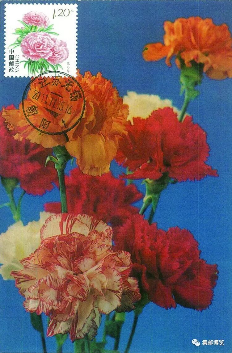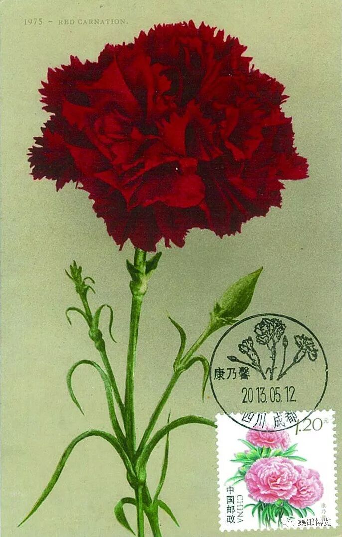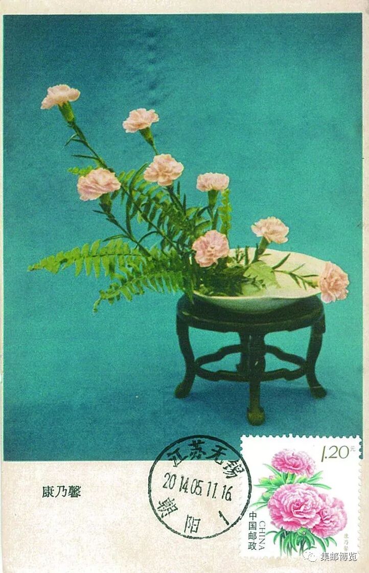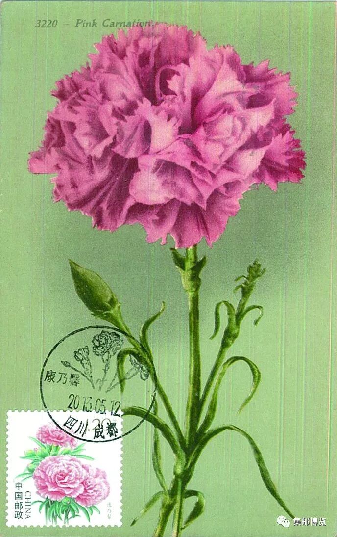 其中一枚选用了1962年苏联的康乃馨图案明信片;