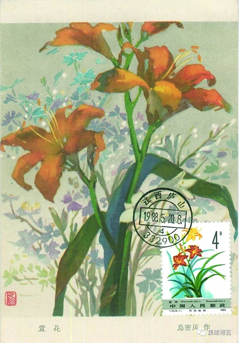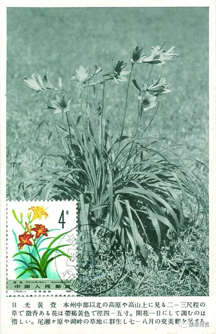 1982年,我国邮政发行了T.72《药用植物(第二组)》特种邮票,其中第一枚就是“萱草”邮票。