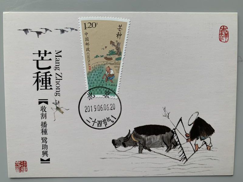 芒种字面的意思是“有芒的麦子快收,有芒的稻子可种”,芒种还带有祈福祝愿之意,今年的芒种就在6月6日,为满足广大集邮爱好者的收藏需求,北京西城区邮电局地安门支局在端午节前夕推出了二十四节气之“芒种”专题邮资机宣传戳。