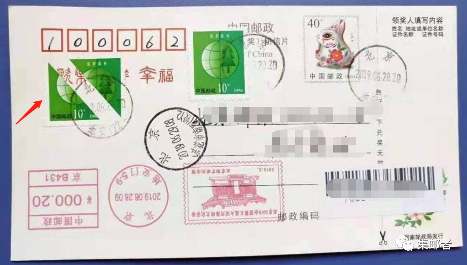 这枚更夸张,邮票剖了一半后,留下一半盖戳,"真聪明"的想法,再是一毛钱,掰成一半使用...“勤俭节约”啊!