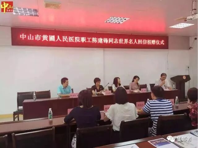 黄圃人民医院举行陈建锋世界名人回信捐赠仪式。