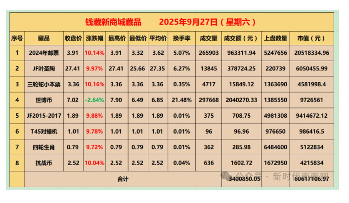 2.2024年一战封神!今日周六,只有钱藏开盘,早盘,笔者在高铁上,买入了少量的叶圣陶及三轮蛇小本。卖出三千2024,补仓世博币。2024邮票,笔者近亲几人小团队从十万持仓陆续减至不到三万。为什么会这么操作,涨得太猛了,拿不住。今天再次强势涨停,笔者深受震憾!在此,祝贺2024一战封神,也祝愿钱藏新商城慧眼识英雄!