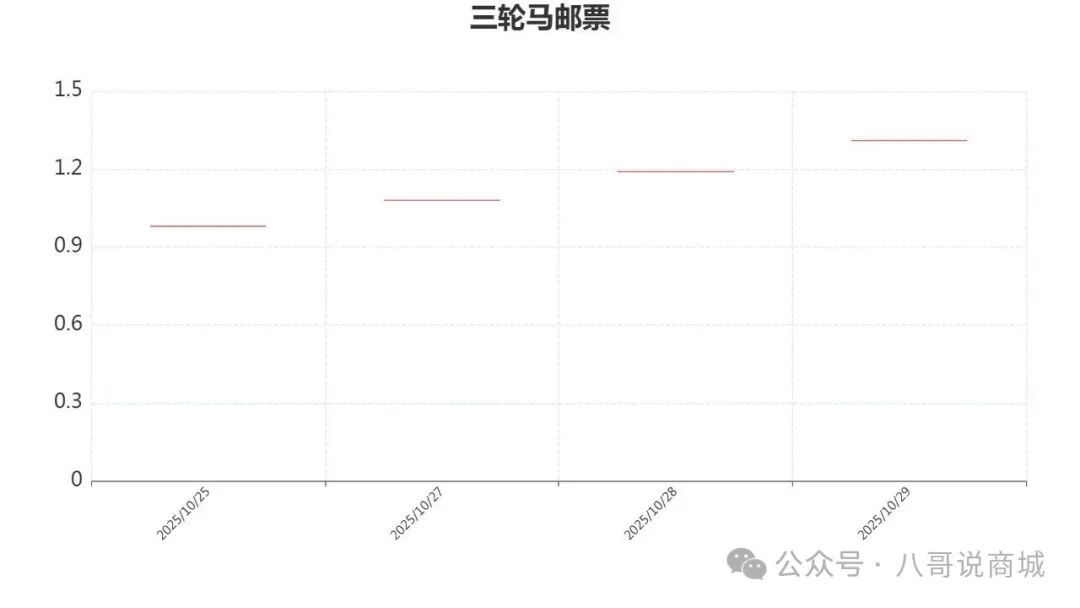 三轮马邮票 涨幅 10% 开盘价1.31元 收盘价1.31元 涨10%建议关注