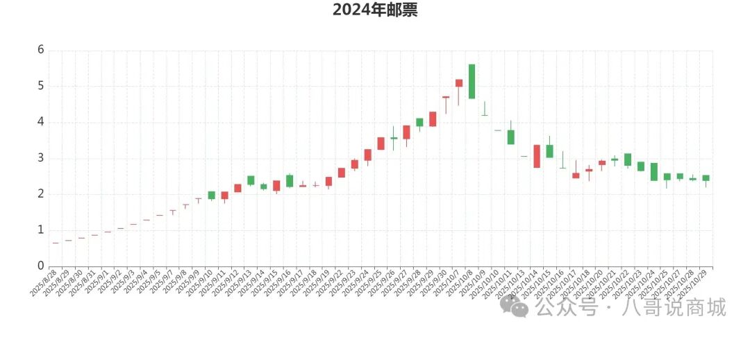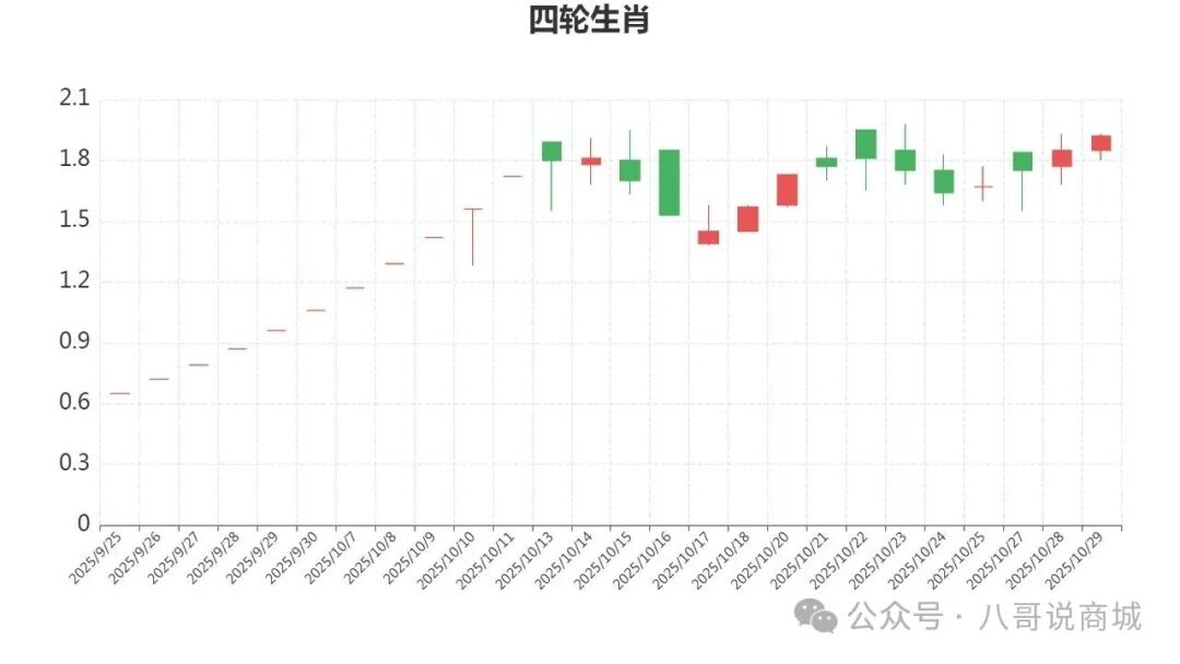 四轮生肖邮票(单枚),目前是离新高1.95元最近的品种,主力控盘度高,随时起飞的节奏,上市0.5元,今天开盘价1.85元,最高价1.93元,最低价1.8元,收盘价1.92元涨3.78%