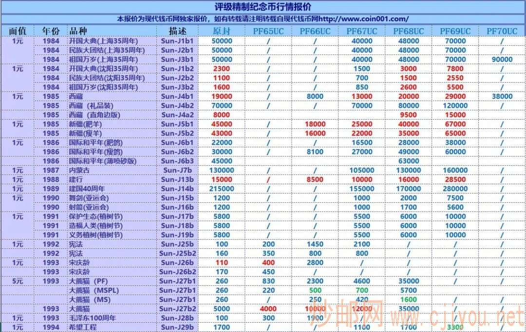 2022年5月精制币/评级精制币报价