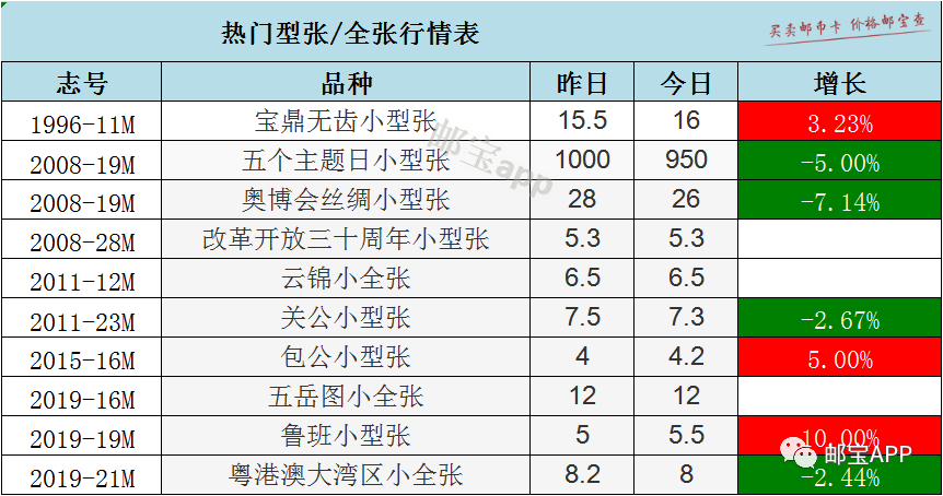 宝鼎无齿小型张今日最新行情为16元,昨日价格为15.5元,上涨3.23%。