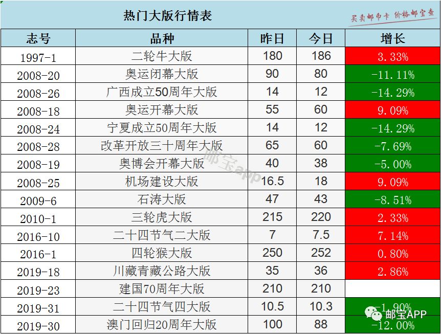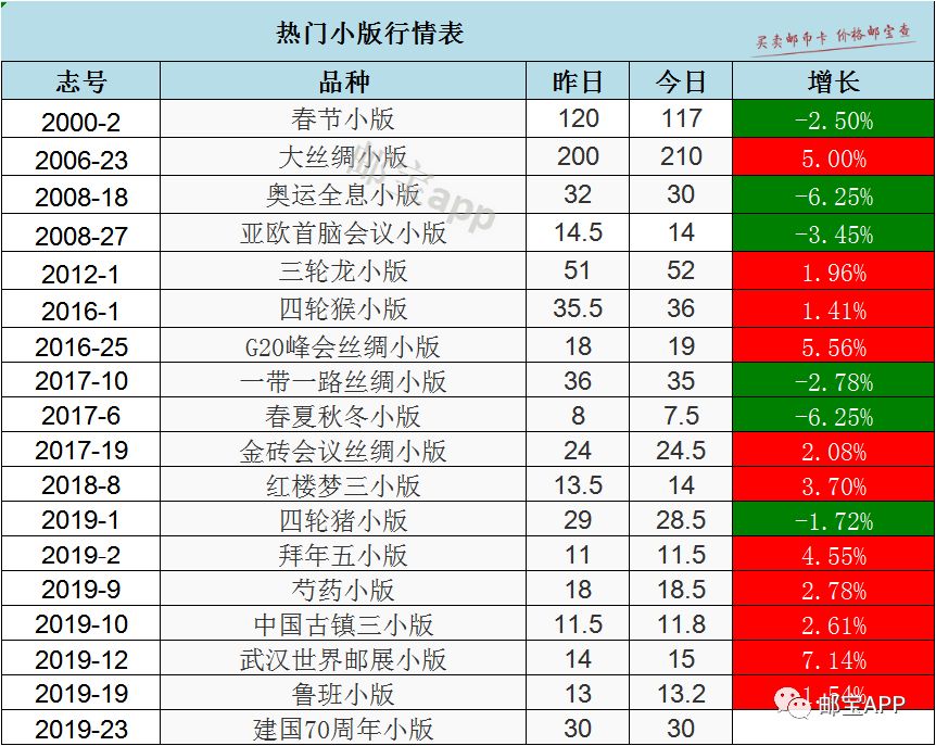 包公小型张今日最新行情为4.2元,昨日价格为4元,上涨5.00%。