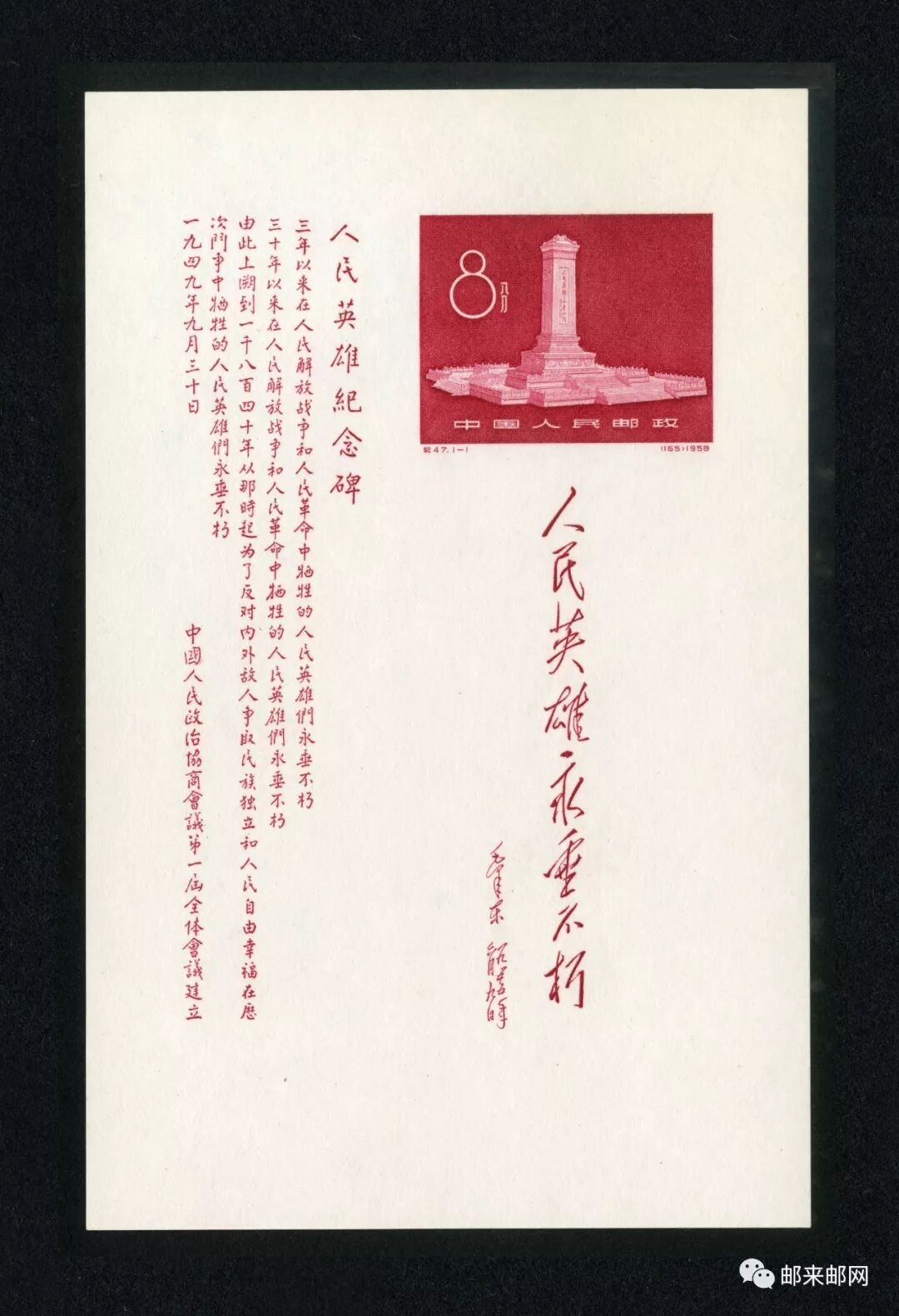 1958年5月1日和5月30日,为庆祝北京人民英雄纪念碑建成揭幕,中国邮政相继发行了《人民英雄纪念碑》纪念邮票和小全张各1枚。纪念邮票由孙传哲设计,小全张则是新中国邮票中的第一枚小全张,由刘硕仁设计。