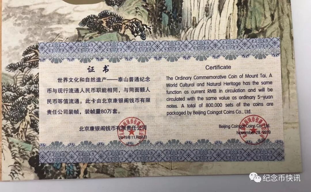 前面我们联盟首发曝光了其它2种康银阁为泰山纪念币单独包装发行的卡册,分别是山水卡册,80万枚套发行量。