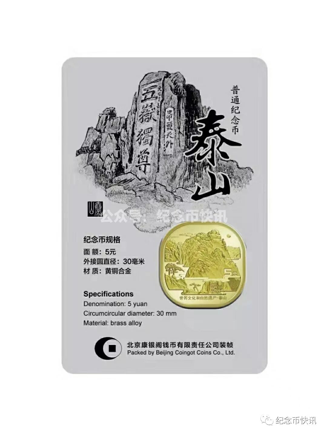 泰山纪念币是中国流通纪念币发行史上史无前例的,中国人民银行和中国印钞造币精心打造的钱币品种,圆角正方形的形制,开创先河,团扇型币制卷筒深受广大收藏爱好者喜爱,康银阁公司也理所应当进行了高规格设计发行,相信泰山纪念币未来一定会有不俗的表现!