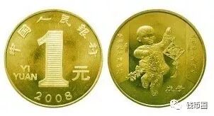 2008年,又发行一套“戊子(鼠年)金银纪念币”,共13枚;同年,还发行了鼠年贺岁流通纪念币(面值1元),想必不少泉友都有收藏(图4),对它记忆深刻。