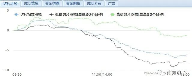 今天早盘反弹无力后于10:14分钟开始了继续下跌之路,截止收盘封片板块收跌-6.03%,恐慌继续加剧,视乎有点过度抛售的节奏,今日封片大盘下探至44.64点处于20日均线得到支撑,盘位触发小幅反弹,下方44点位置还有年线支撑,此处有可能会触发一波反弹,回调途中是挑选优质票品的最佳时期,这几天有些品种表现就不错,寻找自己喜欢的优质品种慢慢买入等待下一波行情的冲锋号!