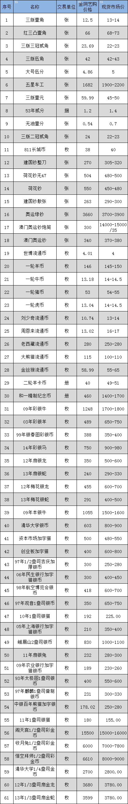 2020.3.13金网艺购热点钱币价格VS现货市场报价