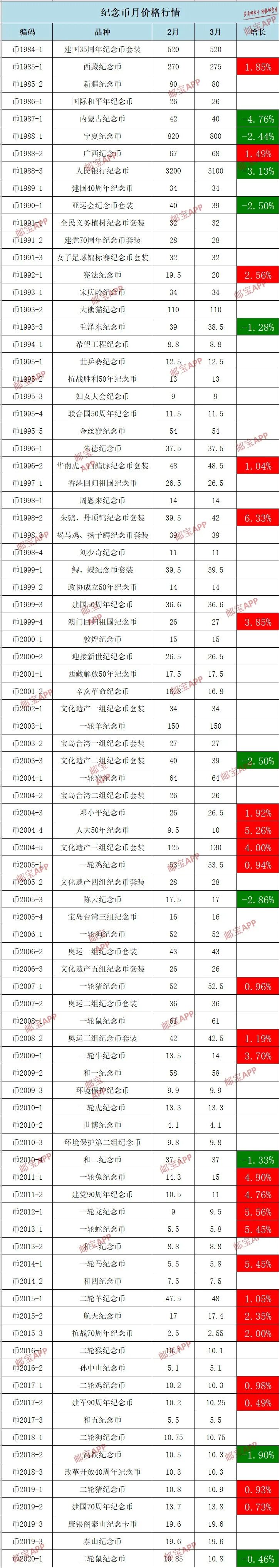 宪法纪念币上月行情为19.5元,本月最新价格为20元,上涨2.56%。