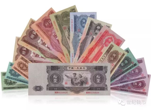 1949年2月发行的伍拾元“红火车”;1951年1月发行的壹佰元“帆船图”;1953年12月发行的伍万元“新华门”;1953年12月发行的伍万元“收割机”;1966年1月发行的第三套人民币中的“水印蝴蝶版”壹角券(又称“背绿水印壹角”)。目前,这五种纸币的存世量(全新挺版)十分稀少,现每种售价均在5万元左右。