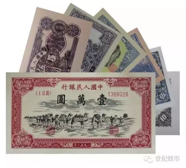 1951年10月发行的伍佰元“瞻德城”,现市价55万元左右;1951年5月发行的伍仟元“蒙古包”,现市价80万元左右;1951年5月发行的壹万元“牧马图”,该币被誉为第一套人民币“币王”,是退出流通领域人民币中价格最高的品种,现市场价高达160万元左右,被誉为第一套人民币中的“特级珍品”。