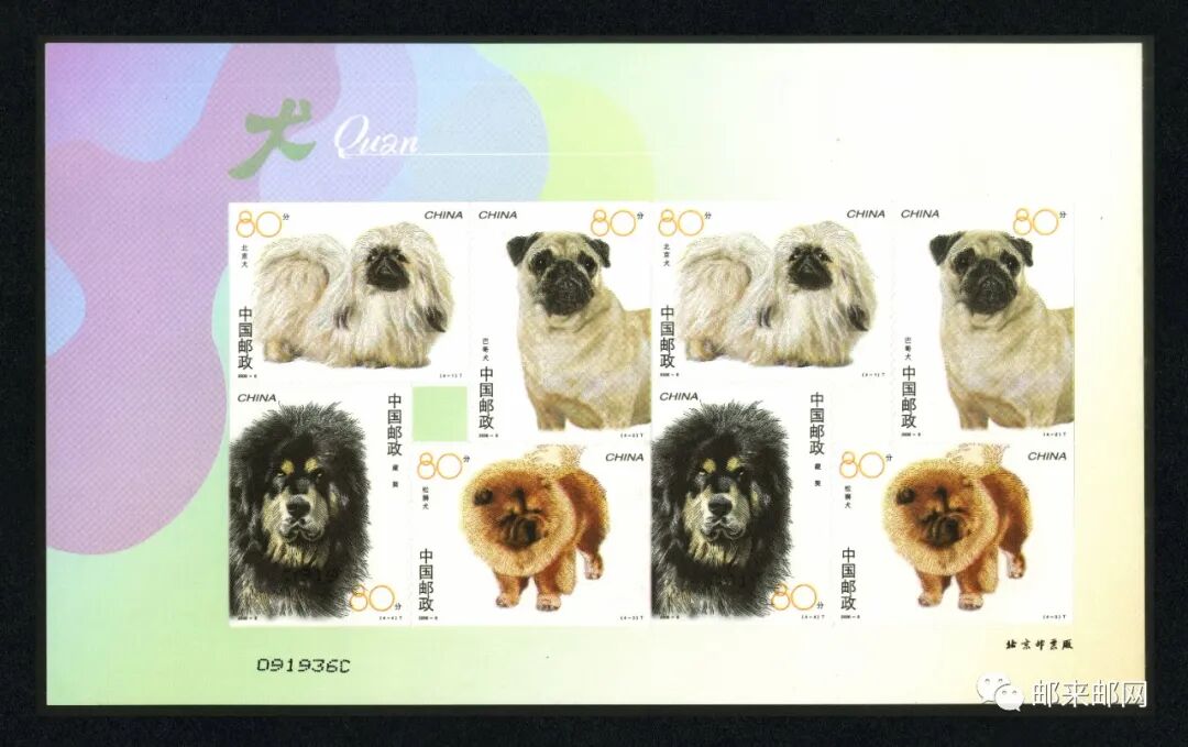 2006年3月19日,为了展示中国丰富的动物资源,国家邮政局发行了《犬》特种邮票,全套4枚,同时发行不干胶小版张(版式二)1套1版。