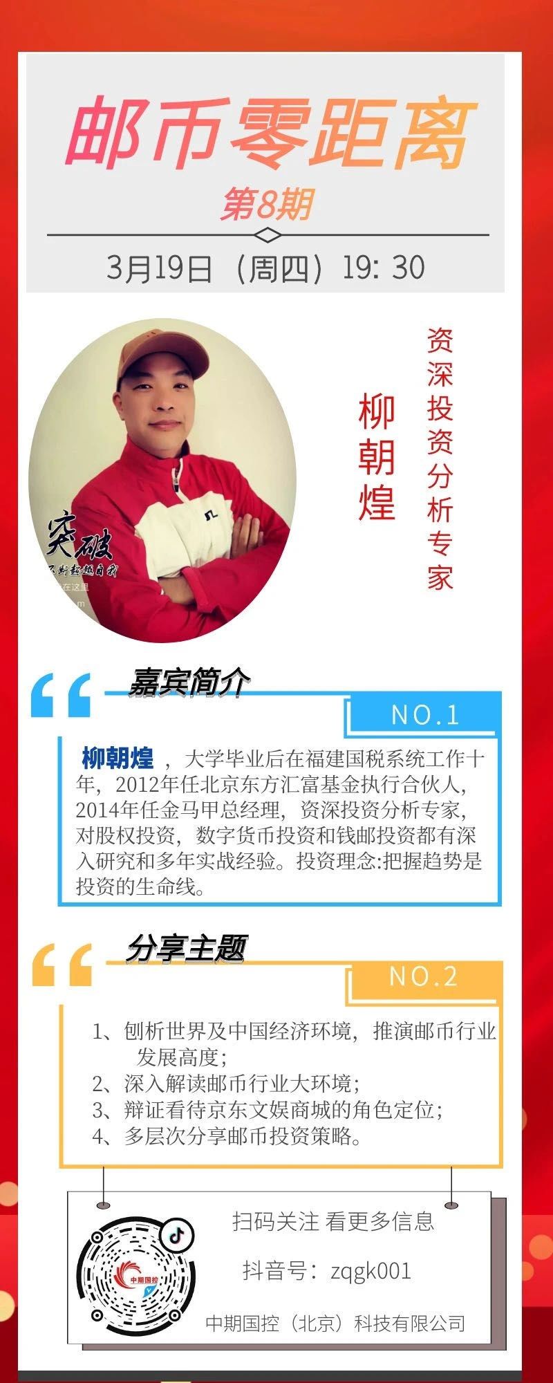 邮币零距离,今晚19:30直播将请到资深投资分析专家柳朝煌柳总,分享其对邮币卡行业的认识、辩证看待京东文娱寄卖商城的角色定位以及邮币投资策略。新视角、新观点,值得期待。抖音直播(zqgk001)