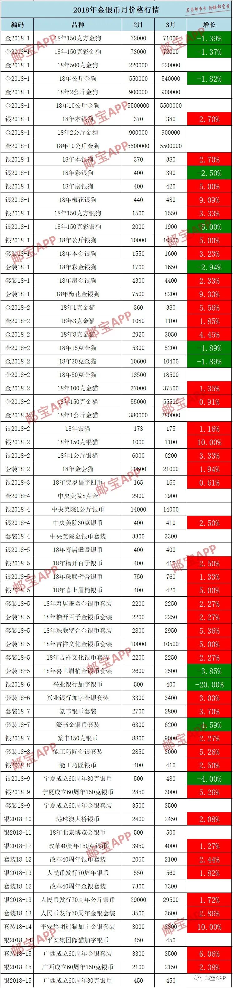 18年喜上眉梢金银币套装上月行情为2600元,本月最新价格为2500元,下跌3.85%。