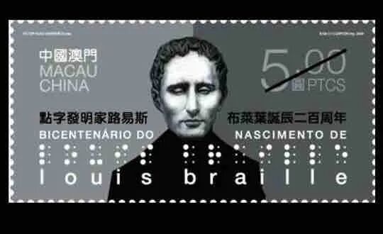 ▲澳门发行的纪念路易-布莱叶邮票