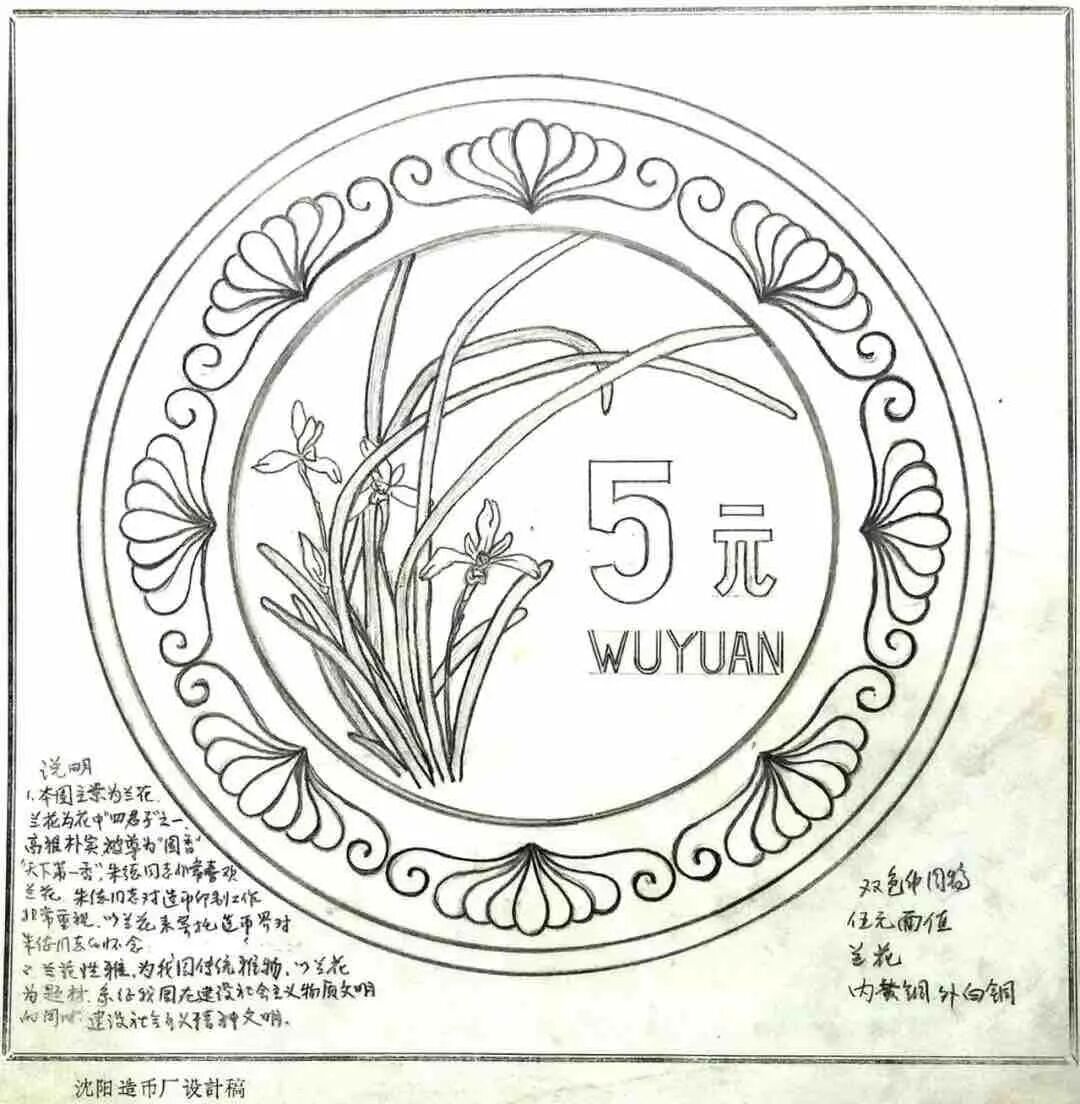李小川画了十几张硬币设计图稿,其中就有一张兰花的图案。后来这个图案被正式采用到一角硬币上。