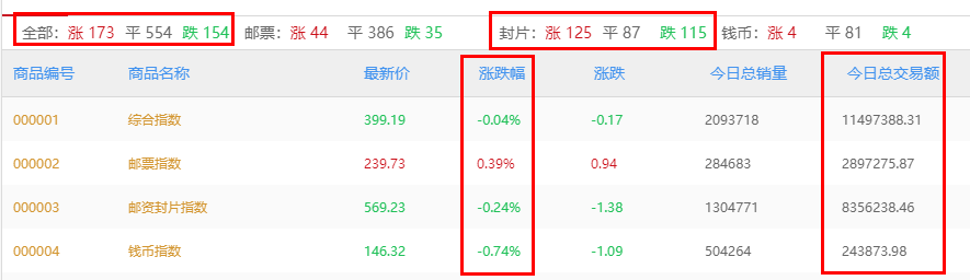 京东文娱寄卖商城商品行情(目前主要分析邮资封片、邮票和钱币板块),以下图表皆可点击放大查看。