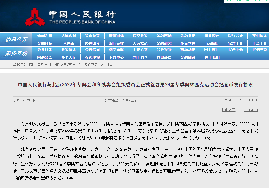 【官方消息】确定发行!2张冬奥钞马上来了! 日期:2020-03-25 来源:集币在线 为贯彻落实习近平总书记关于办好北京2022年冬奥会和冬残奥会的重要指示精神,弘扬奥林匹克精神,展示中国良好形象,2020年3月25日,中国人民银行与北京2022年冬奥会和冬残奥会组织委员会(以下简称北京冬奥组委)正式签署了第24届冬季奥林匹克运动会纪念币发行协议。根据发行协议安排,中国人民银行从2020年起将陆续发行普通纪念币2枚、纪念钞2张、金银纪念币19枚。 北京冬奥会是中国第一次举办冬季奥林匹克运动会,对促进奥林匹克事业发展、进一步提升中国的国际影响力意义重大。中国人民银行按照与北京冬奥组委的协议发行第24届冬季奥林匹克运动会纪念币是北京冬奥会筹办过程中的一件大事,双方将携手并肩设计好、制作好、宣传好、发行好第24届冬季奥林匹克运动会纪念币,以精美的设计、高超的铸造水平和卓越的文化底蕴,展现冬季运动的活力与激情、主办城市的自然与人文以及中国冰雪运动的历史和发展,讲好中国故事、传播好中国声音,为把北京冬奥会办成一届精彩、非凡、卓越的奥运盛会作出积极贡献。