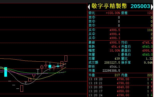 伴随着昨晚圆系品种青海湖回归的一波波热浪,今天开盘后立即掀起一片抢筹的风暴,缩普系继续应声大涨,圆系敬字亭继续涨停,高价中价系列趁势做多,短时间内大盘上涨3个多点,随着部分品种的弱势调整和艺术品板块的集体大回调,大盘几度震荡,最后报收小阳线。
