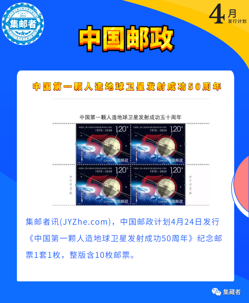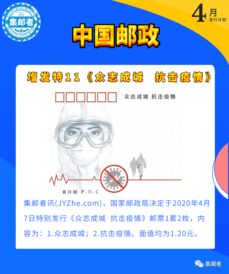 2020年4月份,因特殊日期影响在4月份邮票发行计划变动较大,有2套推迟发行,增发1套特11,4月份一共将新发行4套邮票(含港澳台地区),1种纪念币。