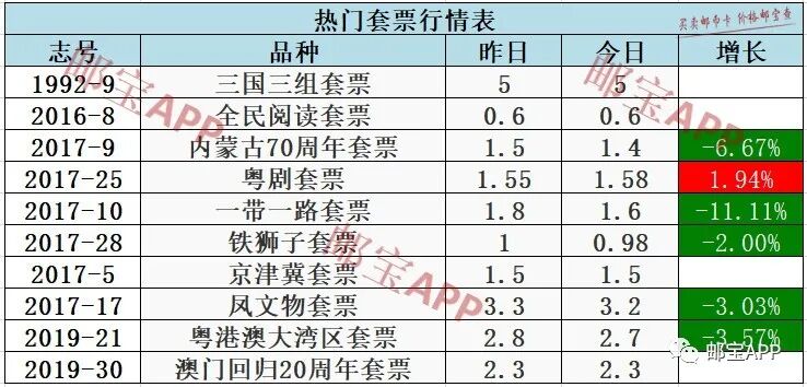 凤文物套票昨日行情为3.3元,今日价格为3.2元,下跌3.03%。