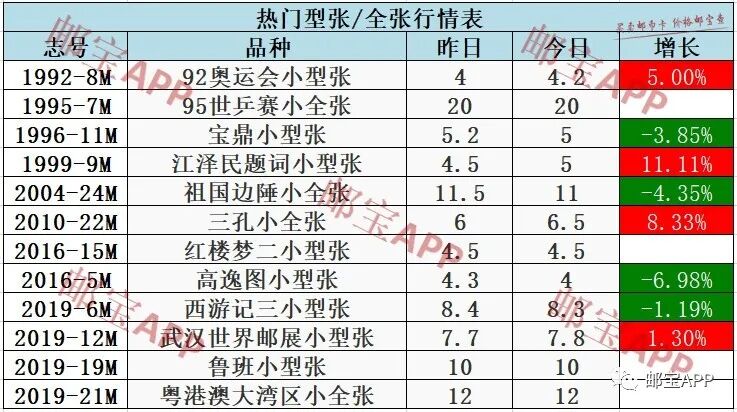 92奥运会小型张昨日行情为4元,今日价格为4.2元,上涨5.00%。