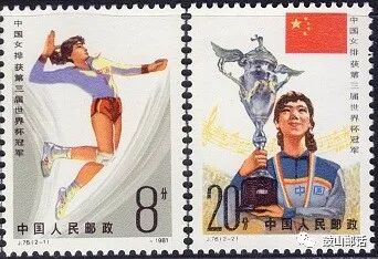 为宣传新中国体育事业的发展,邮票设计者们又以饱满的政治热情,创作了一批富有艺术特色的体育邮票。1980年2月,为我国首次参加第13届冬奥会发行J54纪念邮票;1981年4月,我国运动健儿在第36届世乒赛上首次夺得全部七项冠军,发行了J71。邮票上的五星红旗使我们看到了在世界体坛上中国健儿为国争光,庄严的国旗在雄壮的国歌声中冉冉升起,令中国人民无比骄傲和自豪。1981年,我国女排七战七捷,获得第三届世界杯冠军,国家邮政及时发行了有历史意义的J76-2,这套邮票从决定到设计,印刷,发行只用了一个月零五天,这在邮票发行史上也是极其少见的,被评为1981年最佳邮票。