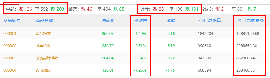 京东文娱寄卖商城商品行情(目前主要分析邮资封片、邮票和钱币板块),以下图表皆可点击放大查看。