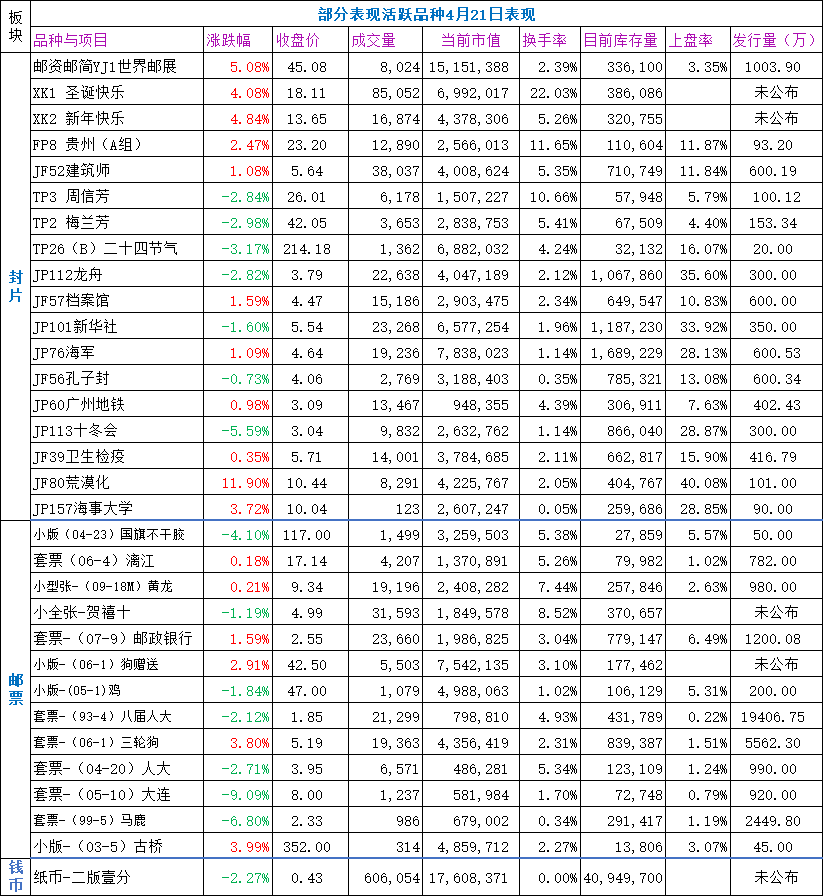 邮票板块:50个新品上盘压力下小幅收跌,关注热门品种以及未进入热门成交明显活跃买卖盘较多的品种。